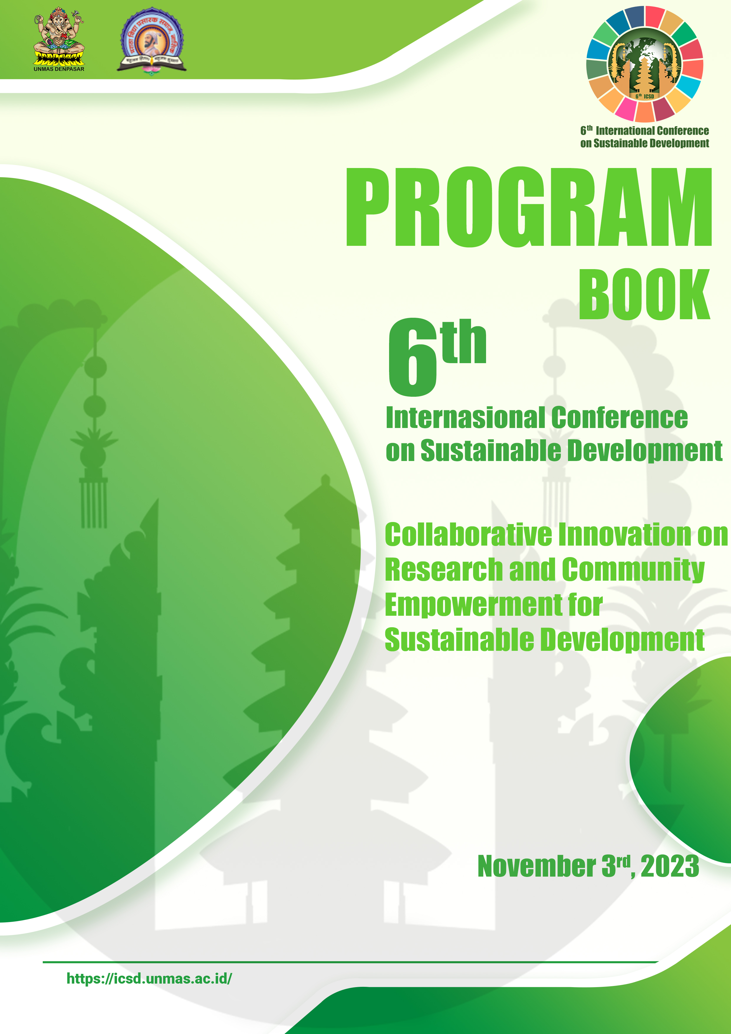 6th International Conference on Sustainable Development (ICSD) is an annual program organized by Universitas Mahasaraswati Denpasar, with the theme "Collaborative Innovation on Research and Community Empowerment for Sustainable Development".